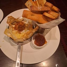 The drinks were ordered, draught Efes for the passengers and soft drinks for the unlucky drivers. The starters arrived in good time and they were; four had gone for the grilled spiced Turkish sausage with garlic dip (really nice) another starter was the pan-fried vegetables topped with goat’s cheese. The last selection was the hot sharing platter of; Turkish sausage, halloumi fries, falafel, muska boregi, mince boregi with olives, garlic dip and sweet chilli (this was excellent).