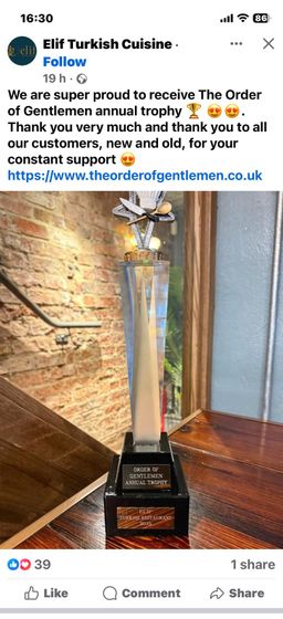 The main meals arrived and they did not disappoint. The choices were ; the Elif kofte special with the lovely bread, the mixed grill which was cooked to perfection, Lamb chops and the surf and turf (chicken) which was superb. The final three selections were the mixed shish kebab which had a great mix of flavors. The night was superb and got even better when we received a refund on the bill for four very questionable pints of extremely flat Efes lager. Fair play to the staff. Mark (the 2026 selection winner) also received a bottle of wine. No venue has ever won the trophy for two years running ? Who knows ?