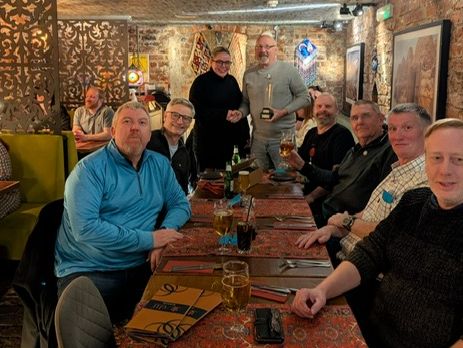 The Order of Gentlemen returned to the Copperstone Thai Restaurant in Linthorpe to present them with the coveted annual trophy. Only Simon was missing due to a heavy cold, Mark volunteered to be one of the drivers as he was nearing the end of his ‘dry’ January adventure. Well done Mark.